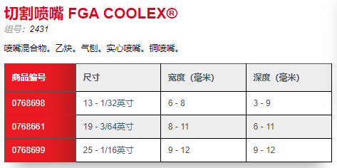 GCEdruva 切割喷嘴 FGA COOLEX系列
